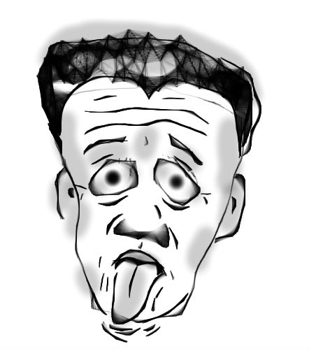 An experienced Guesser will count the lines on the forehead for the Decades and the crow's feet and other lines for years. This guy is about 32. Practice by studying the face and lines of a few people you know and see if it works. Certain ethnic groups and individuals will differ (a Tibetan monk for e.g.)but for the most part its good. There's no reason he's sticking his tongue out; I just drew it like that. .